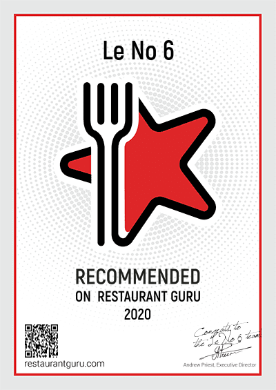 Septembre 2020 : Le "Le N°6" remporte le "Awards de recommandation 2020" attribué par Restaurantguru.com